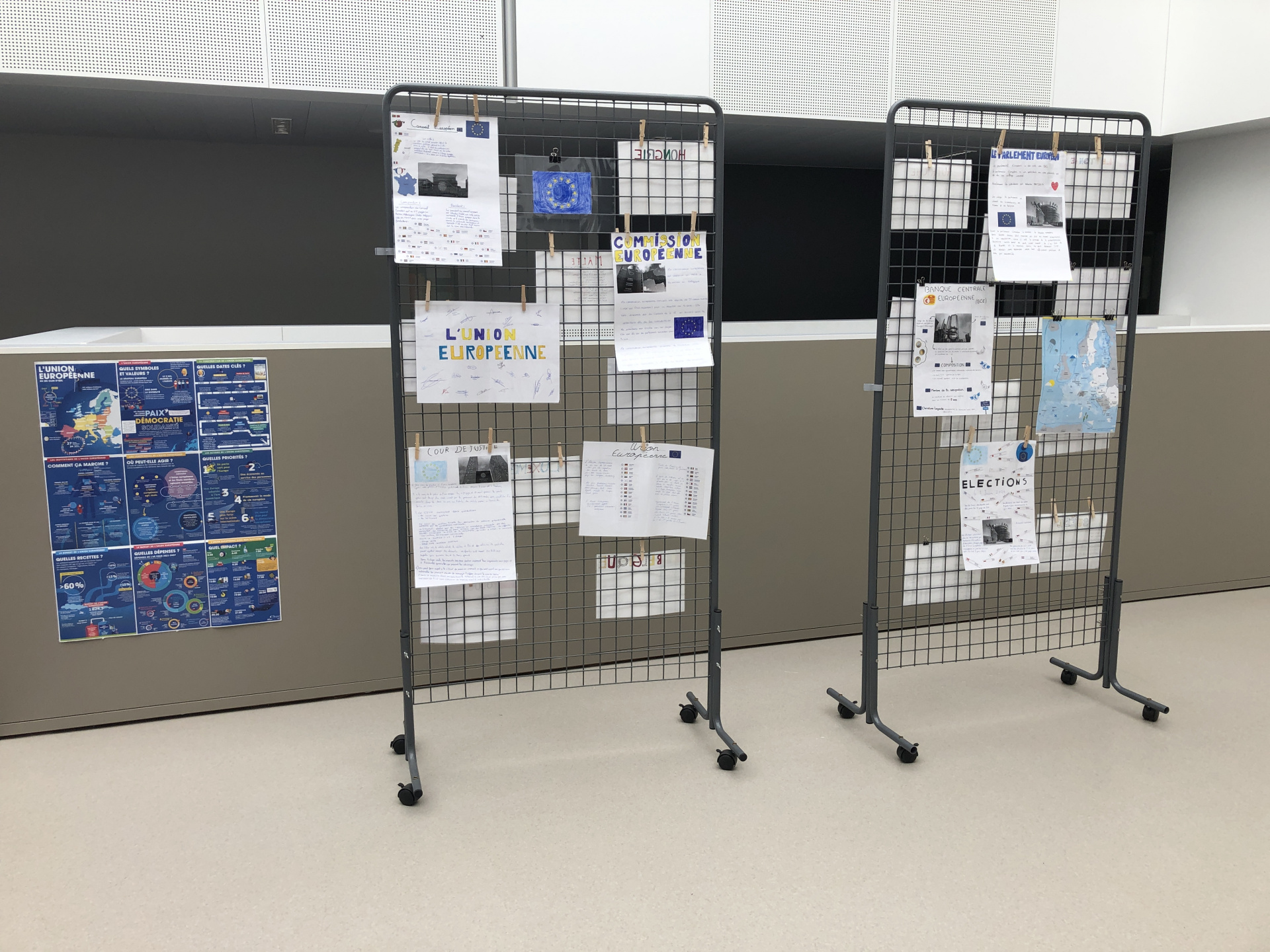 La première a consisté en l’affichage du travail des élèves de 3e E portant sur l’Union européenne (États membres, institutions…) avec un éclairage particulier sur les élections européennes du 9 juin.