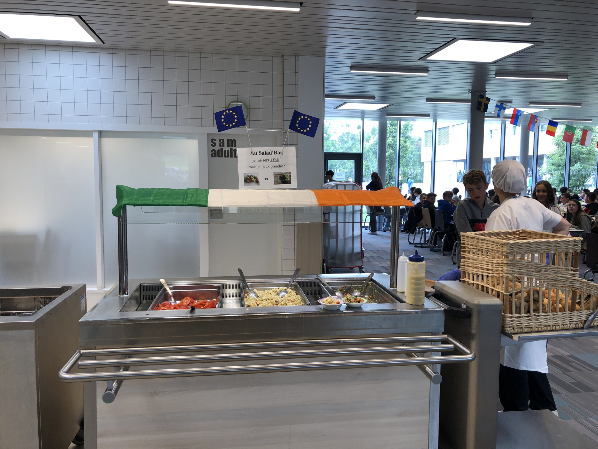 La seconde a consisté, d’une part, en un repas européen concocté par l’équipe de cuisine et, d’autre part, de la décoration du self par deux élèves 5eC et des élèves de 4eD.