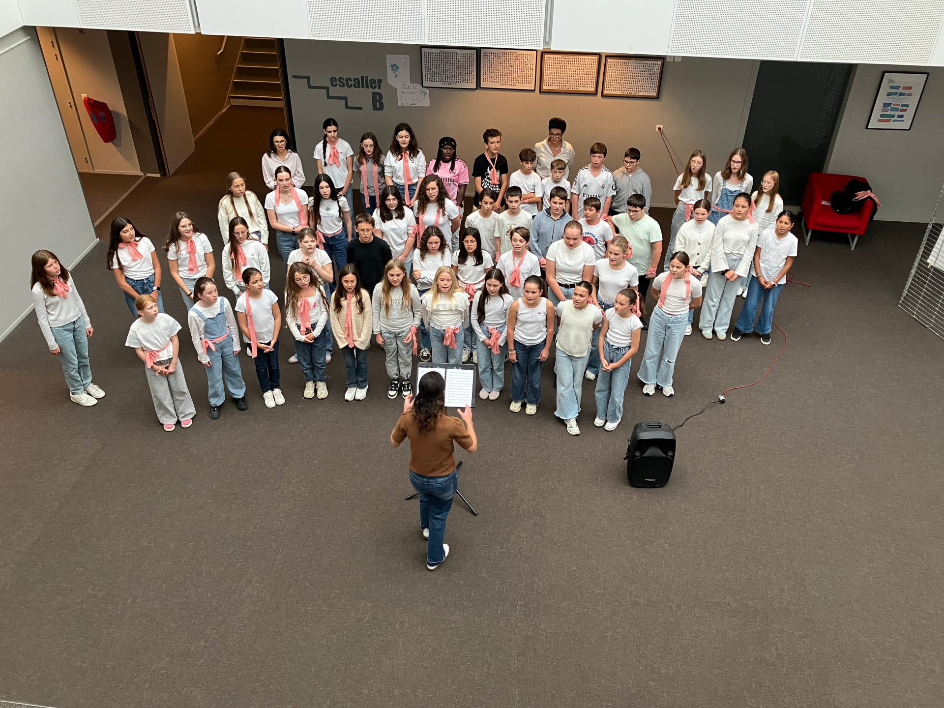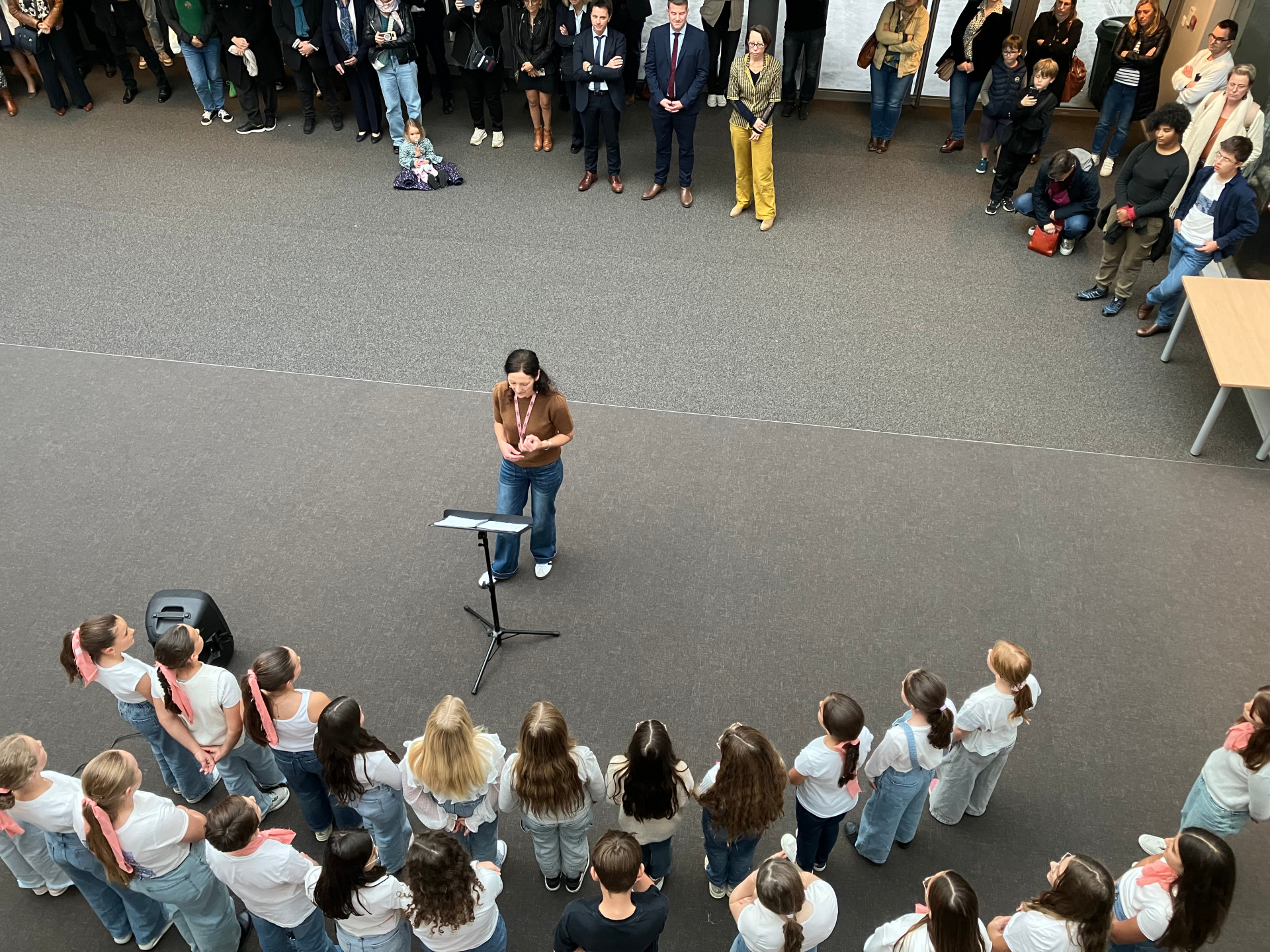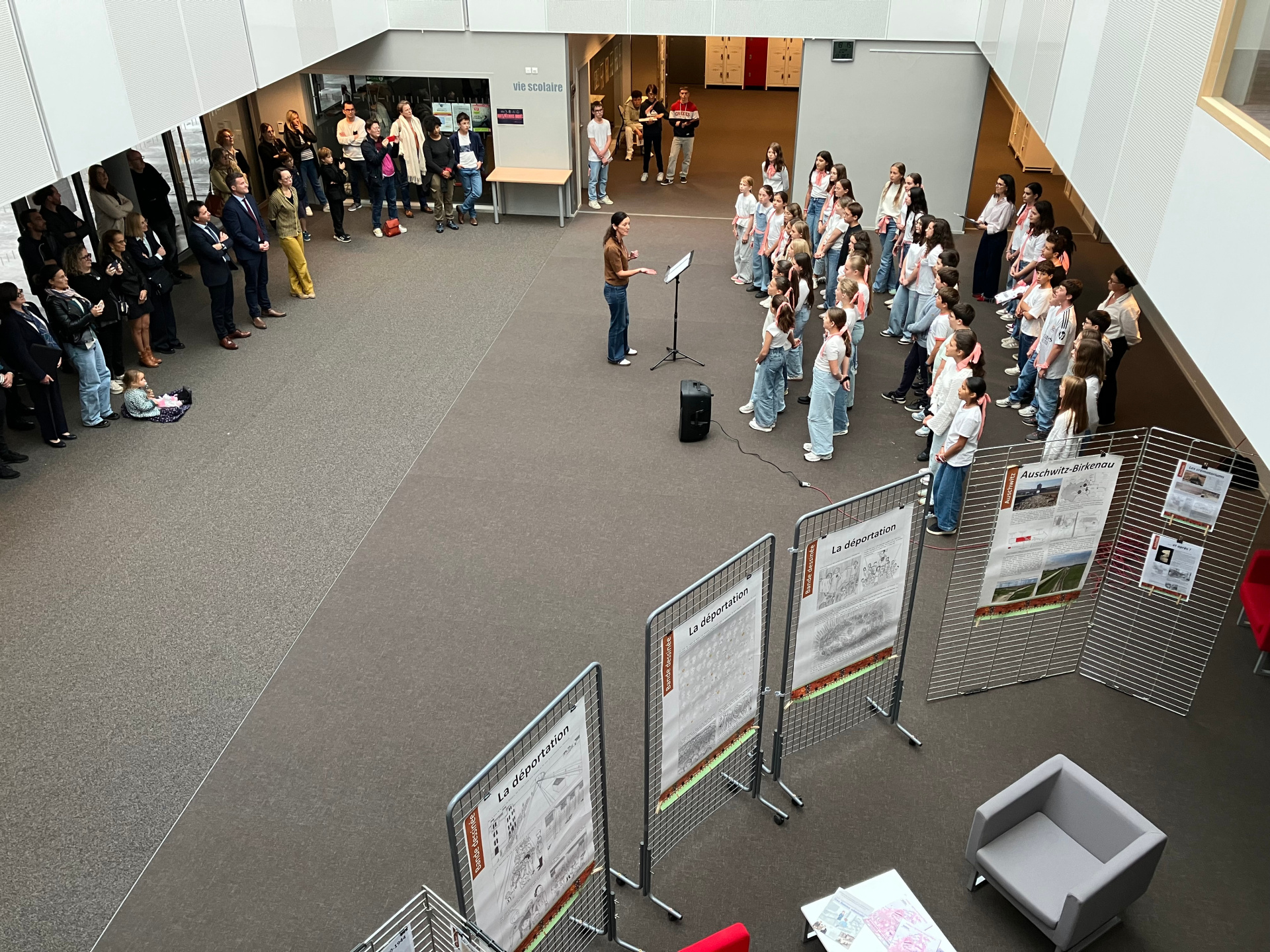 En prélude à cet évènement, les invités ont pu assister à une courte représentation de la chorale du collège, ainsi qu’à la présentation du projet « Destination Atlantique » par quelques élèves de 4A.