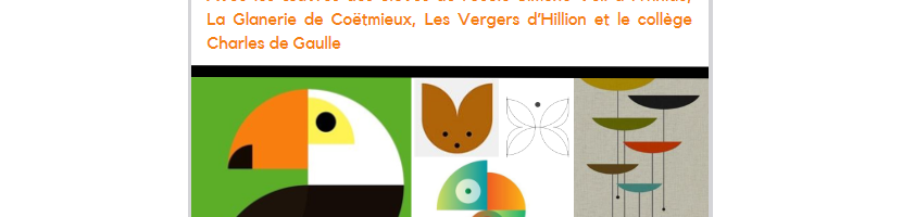 Depuis le début de l’année, lors des cours de mathématiques, les élèves de classes de 6es A, C, E et F ont réalisé des oeuvres à la manière d’artistes connus pour leur utilisation de la géométrie. Vous pourrez admirer ces oeuvres exposées à la médiathèque d’Yffiniac du 6 au 27 avril.